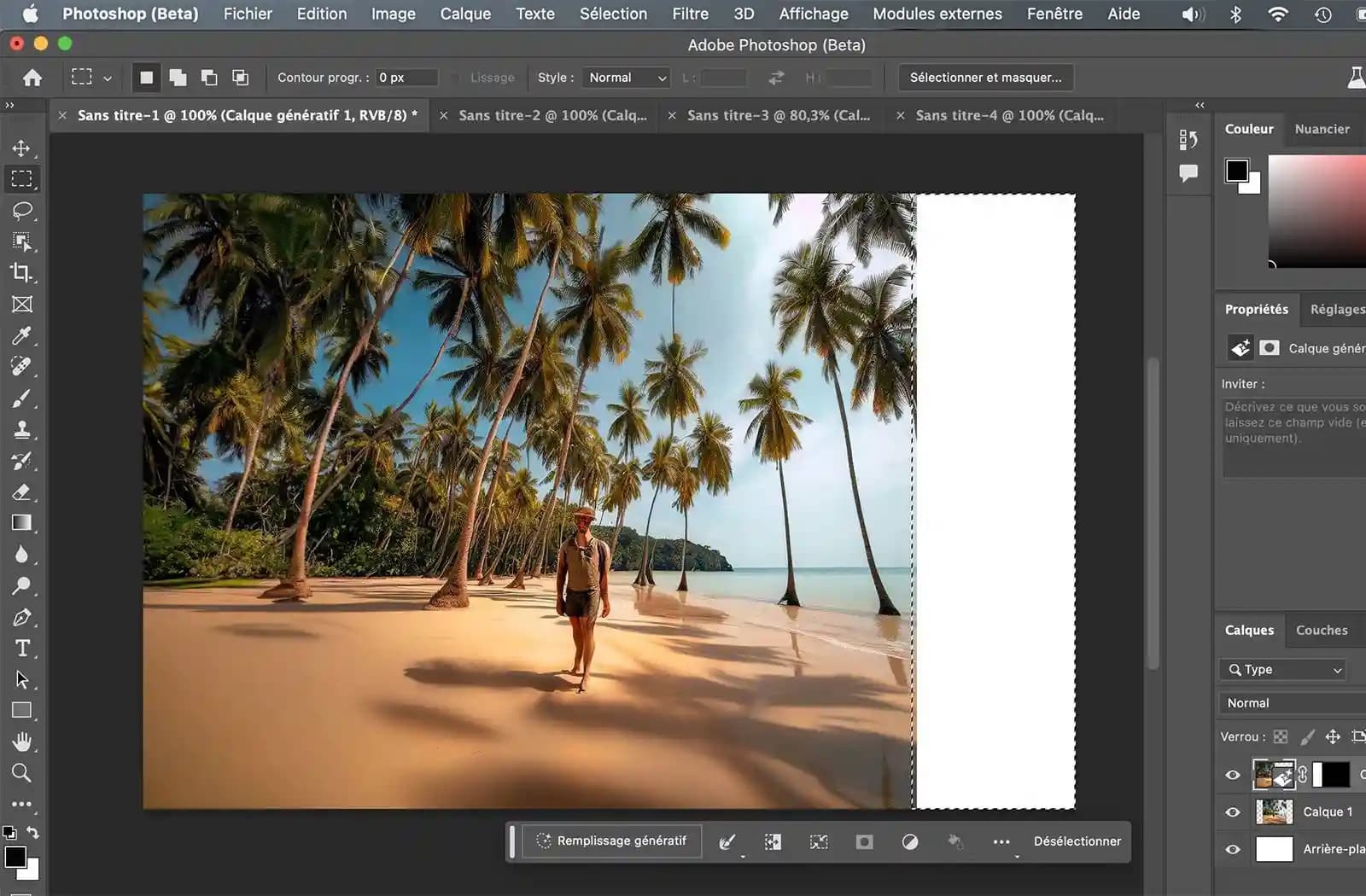 Astuce : Expérimentez avec cette fonctionnalité pour étendre des arriÚre-plans ou recréer des zones manquantes de maniÚre naturelle.